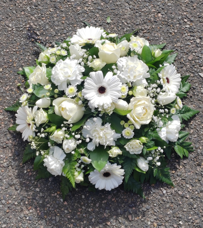 • posy, posies, funeral, tribute, white, wreath, oasis, flowers, florist, delivery, harold wood, romford, havering